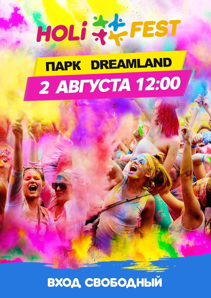 Color Holi Fest снова собирает любителей ярких красок повеселиться в парке Dreamland. Гостей ждет музыкальное представление. На территории фестиваля будет организована бесплатная детская зона и зоны отдыха, где можно разместиться всей семьей.