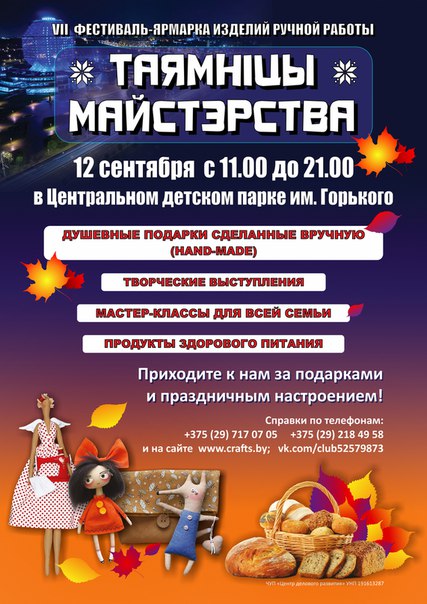 13.09.2015 10.00-19.00 Праздник «Город сказка, город мечта!» Парк им. 900-летия г. Минска (ул. Ташкентская, 33)