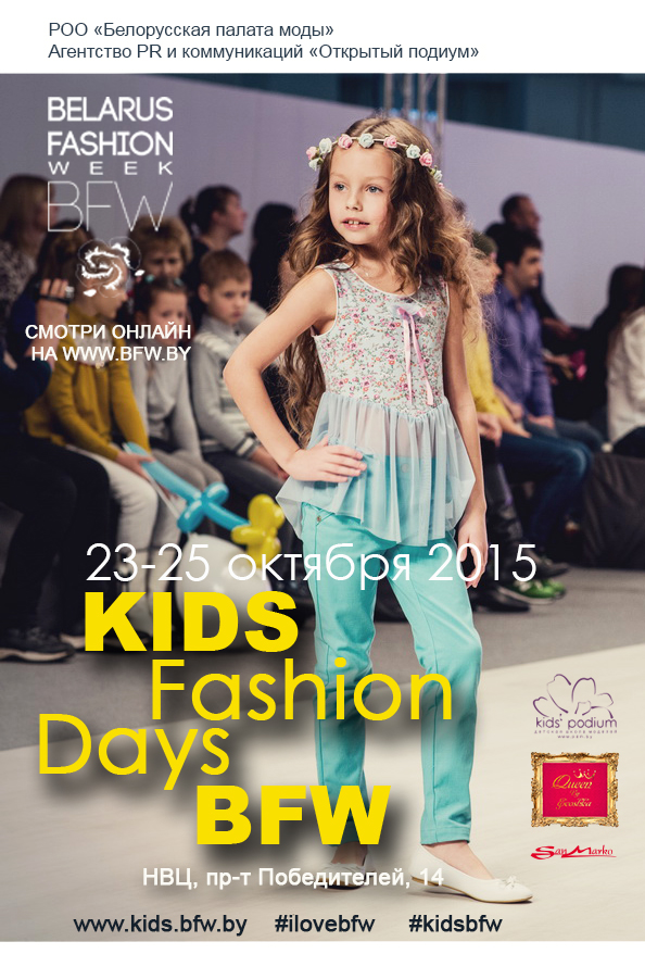 Этой осенью на главном подиуме страны коллекции для детей и подростков презентуют: бренд Barbie, Elen Ermo, Leya me, SVE-ZH. You are 4 me, Evoshka Style, дизайнер Гаврилюк Олеся – бренд «MATRE6KI - говорящие вещички», дизайнер Роман Магер - бренд "R-brand", дизайнеры Надежда Москвитина и Ольги Синяк - бренд "Oli Hope», дизайнер Инга Потехина - бренд "ANNmodels", дизайнер Канашевич Вероника и другие. Также в рамках показов пройдет благотворительный сбор средств на строительство Белорусского детского хосписа.