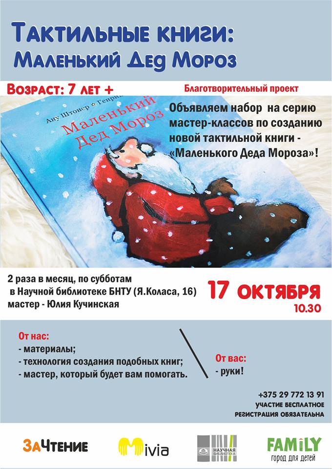 2 раза в месяц по субботам участники будут собираться в Научной библиотеке БНТУ на мастер-классы от Юлии Кучинской, чтобы изготовить 5 тактильных копий этой замечательной книги.