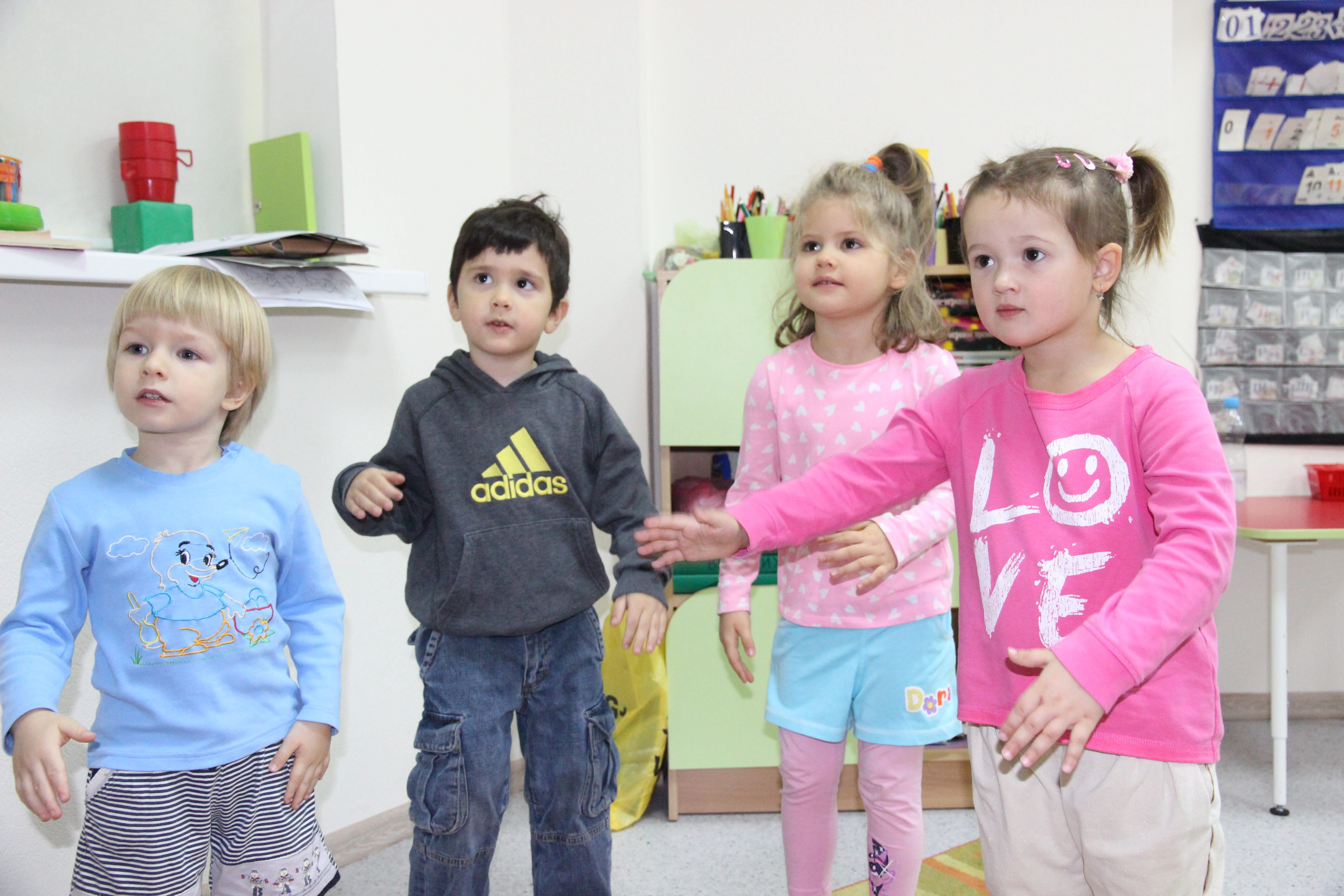 мини-сад работает с 9.00 до 13.00. За это время дети проходят 3 развивающих