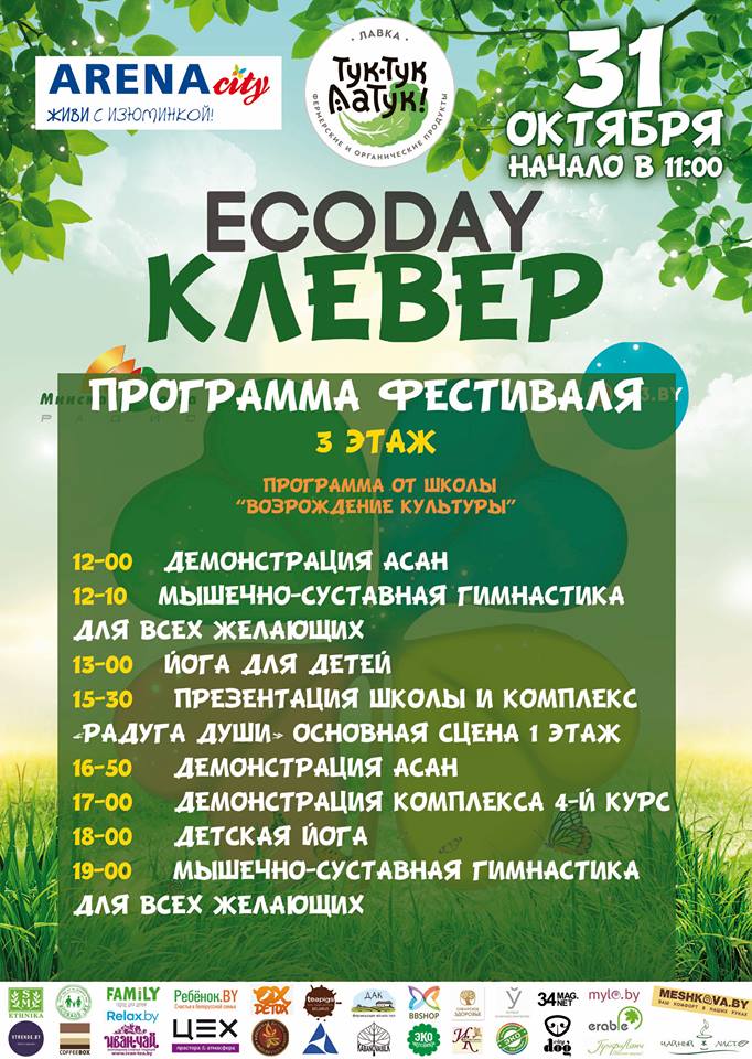 31 октября с 12.00 до 20.00 два этажа Арена-сити превратятся в настоящий эко-город для всей семьи со своей жизнью, мастерами, мини-маркетами, дегустациями, презентациями, уличными музыкантами и актерами, художниками и детской эко-зоной. Чем будут удивлять организаторы детей и взрослых в этом году, одним из первых узнал Family.by. И мы с радостью публикуем подробное расписание эко-фестиваля "Клевер".