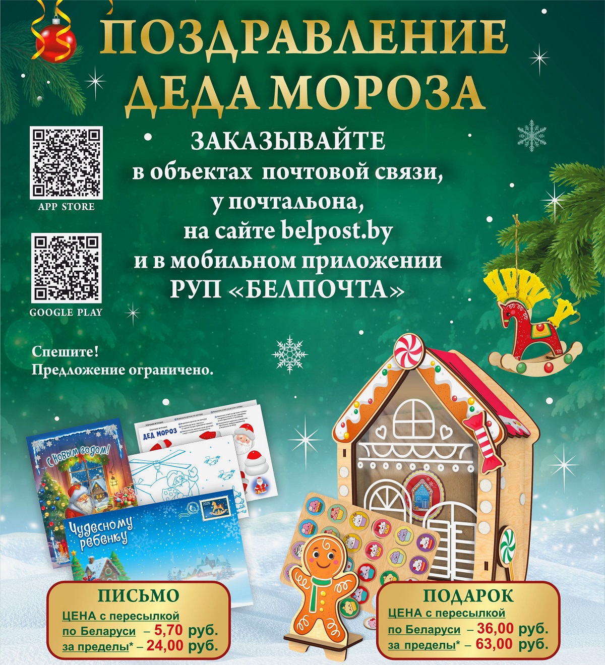 Оформить заказ можно в любом объекте почтовой связи или на дому онлайн или мобильное приложение. Заказы на пересылку по Беларуси принимаются по 21.12.2025 (включительно), за пределы страны – по 30.11.2025 (включительно).