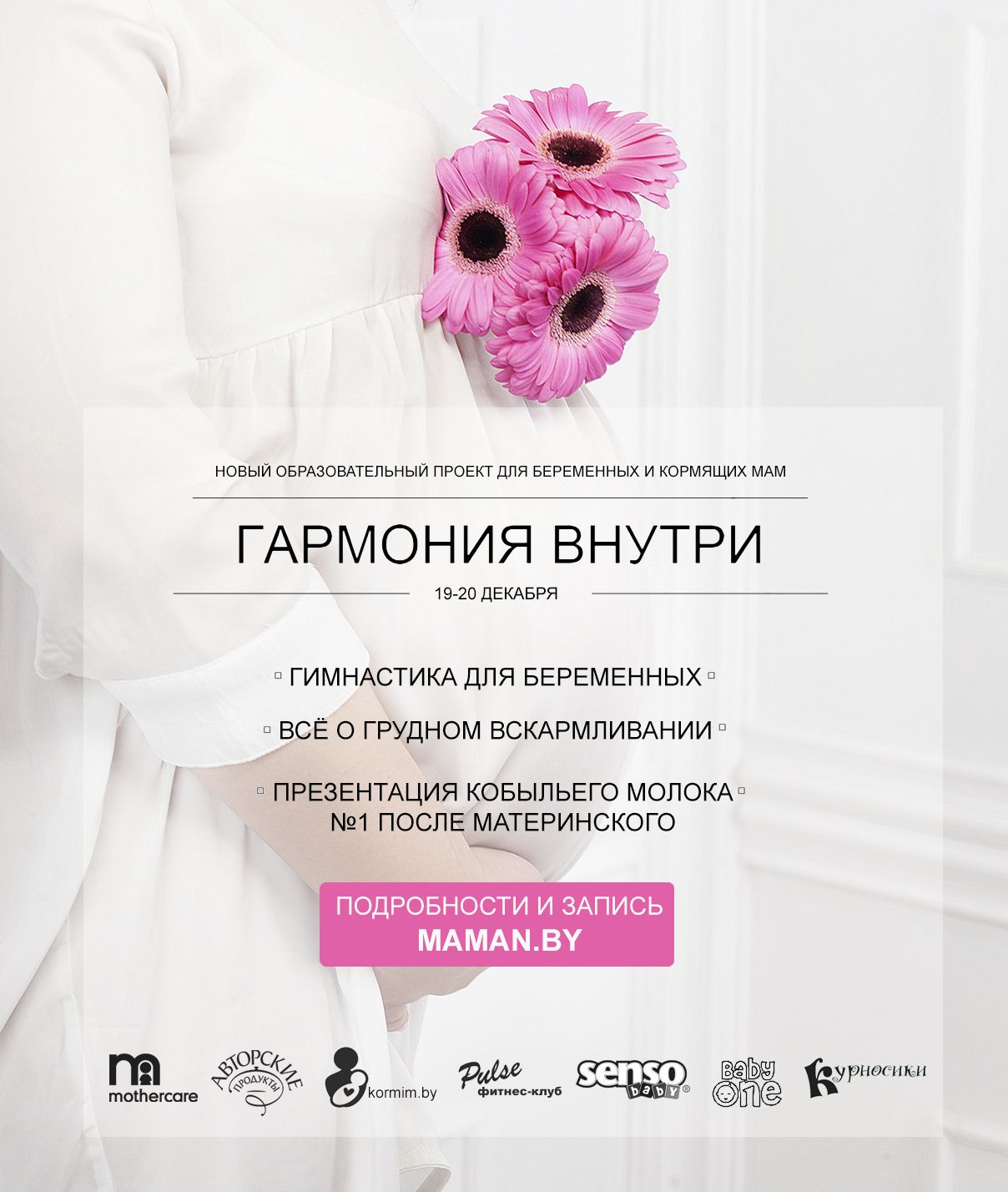 "Гармония внутри" - это новый образовательный проект для беременных и кормящих мам. В программе: гимнастика для беременных, теоретическая и практическая подготовка к грудному вскармливанию, презентация-дегустация кобыльего молока и многое другое.