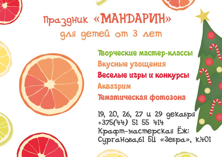 Новогодний праздник «Мандарин» - это зимняя сказка для детей с творческими занятиями, традиционными угощениями и насыщенной развлекательной программой. Участников ждут мастер-классы по созданию елочных игрушек, декораций и других новогодних чудес с помощью простых и интересных техник (лепка из полимерной глины, декупаж, квиллинг, свит-дизайн и другие).