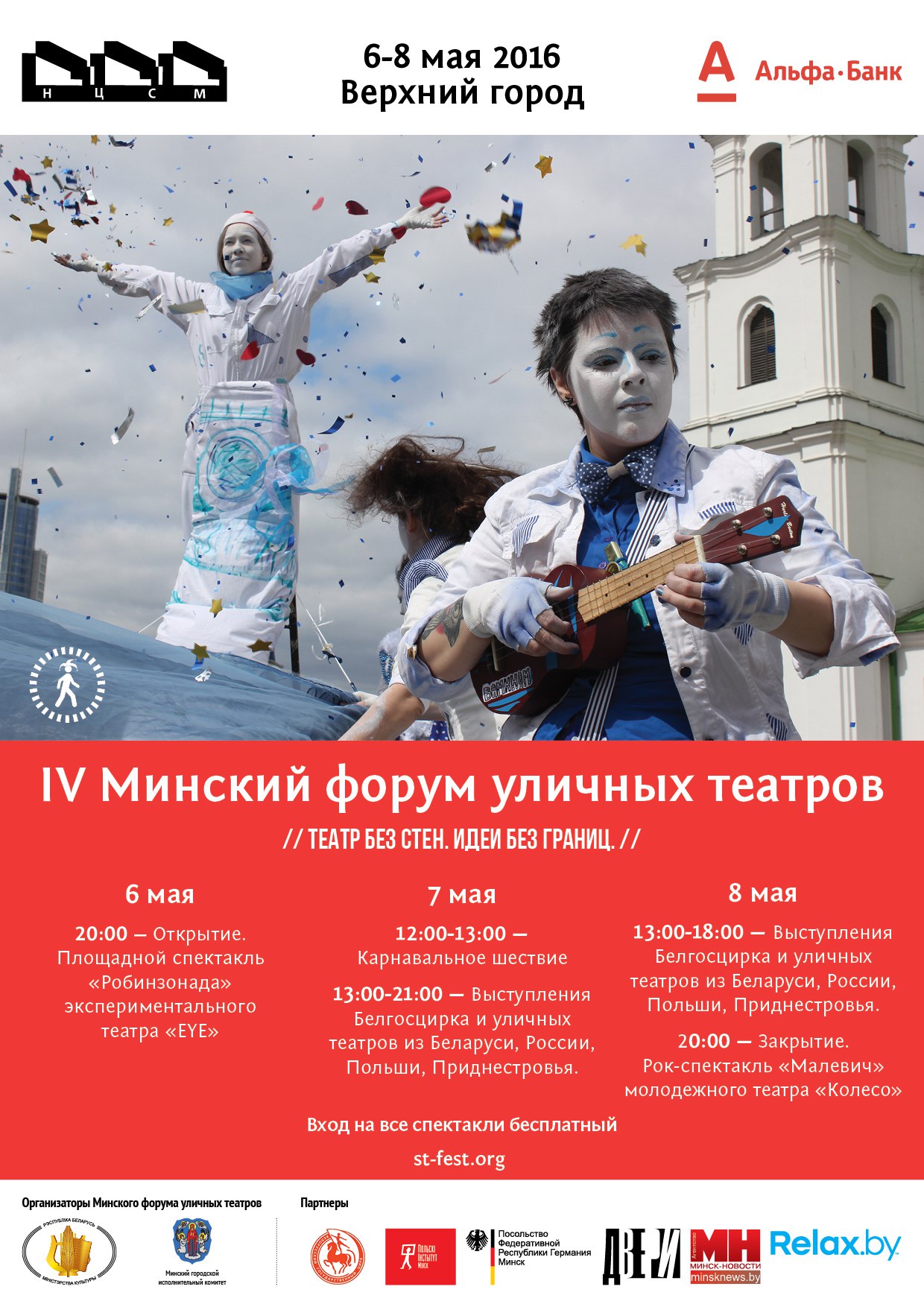 Каждый желающий сможет бесплатно посмотреть постановки, поучаствовать в карнавале и интерактивных спектаклях. Спектакли покажут уличные коллективы из Беларуси, Германии, Польши, России и Приднестровья.