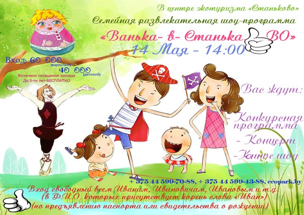 Гости праздника смогут поучаствовать в разнообразных играх, развлечениях и конкурсах, увидят и услышат новую концертную программу. Для Вас будет продемонстрировано конное шоу, только Вам будет сопутствовать погода и настроение, которое объединит всех без исключения на семейной шоу-программе «Ванька-в-Станьково».