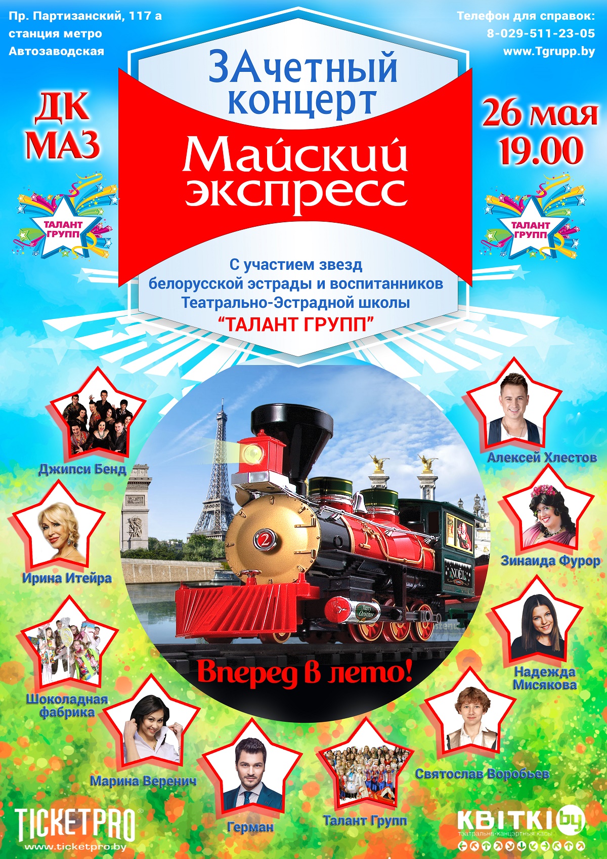 ЗАчетный концерт "Майский экспресс" с участием большого количества звёзд белорусской эстрады и талантливых детишек.