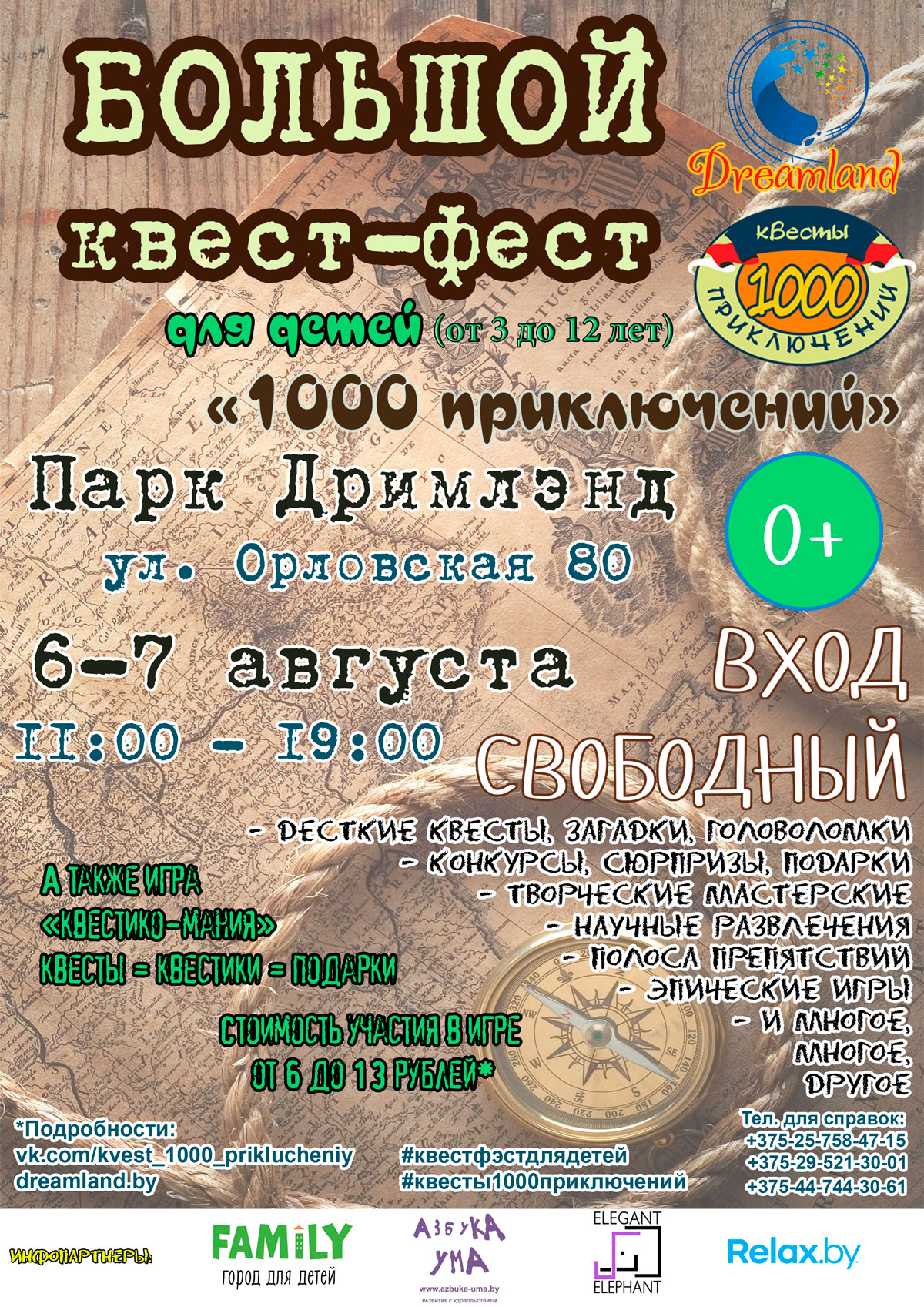 Второй квест-фестиваль для детей и родителей пройдет уже в эти выходные. На два дня парк Дримлэнд опять превратится в огромную квест-игру, где маленькие и взрослые смогут проверить свою смекалку, находчивость и упорство.