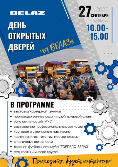 День открытых дверей на заводе БЕЛАЗ в г. Жодино состоится в субботу, 27 сентября. Мероприятие традиционно приурочено к празднованию Дня машиностроителя.