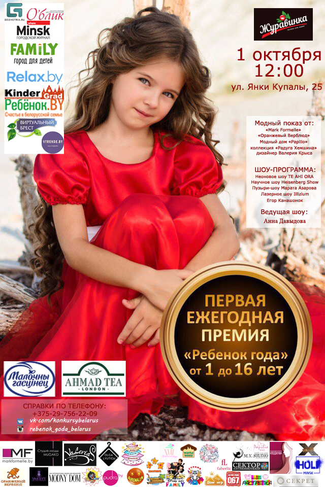 Республики Беларусь Первую Ежегодную премию «Ребенок года». К участию в конкурсе приглашены дети со всей Беларуси возрастом от нескольких месяцев до 16 лет.