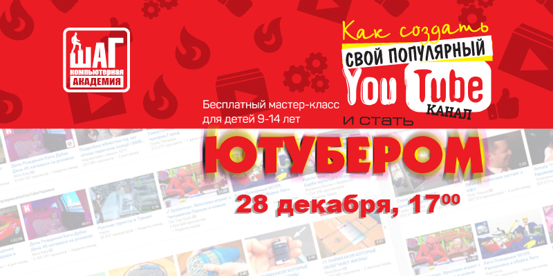 На мастер-классе расскажут, как создать свой ютуб-канал, собрать подписчиков, стать известным и знаменитым не вставая с дивана, правильно выгружать видео.