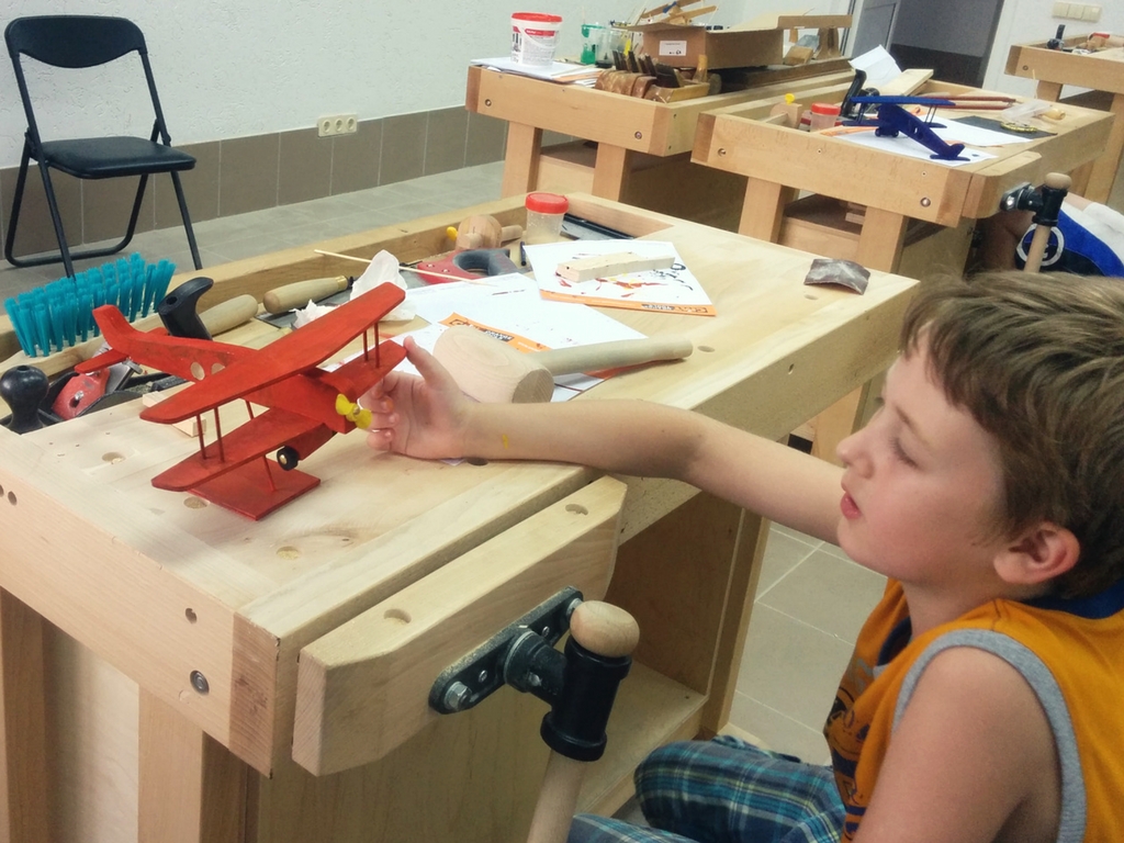 Работа руками с деревянными материалами – особое занятие для мальчишек любого возраста. В этом уверены преподаватели столярной мастерской «Стамеска», где сейчас проходит набор мальчиков 9-12 лет сразу на два курса «Модель самолета» и «Модель корабля».