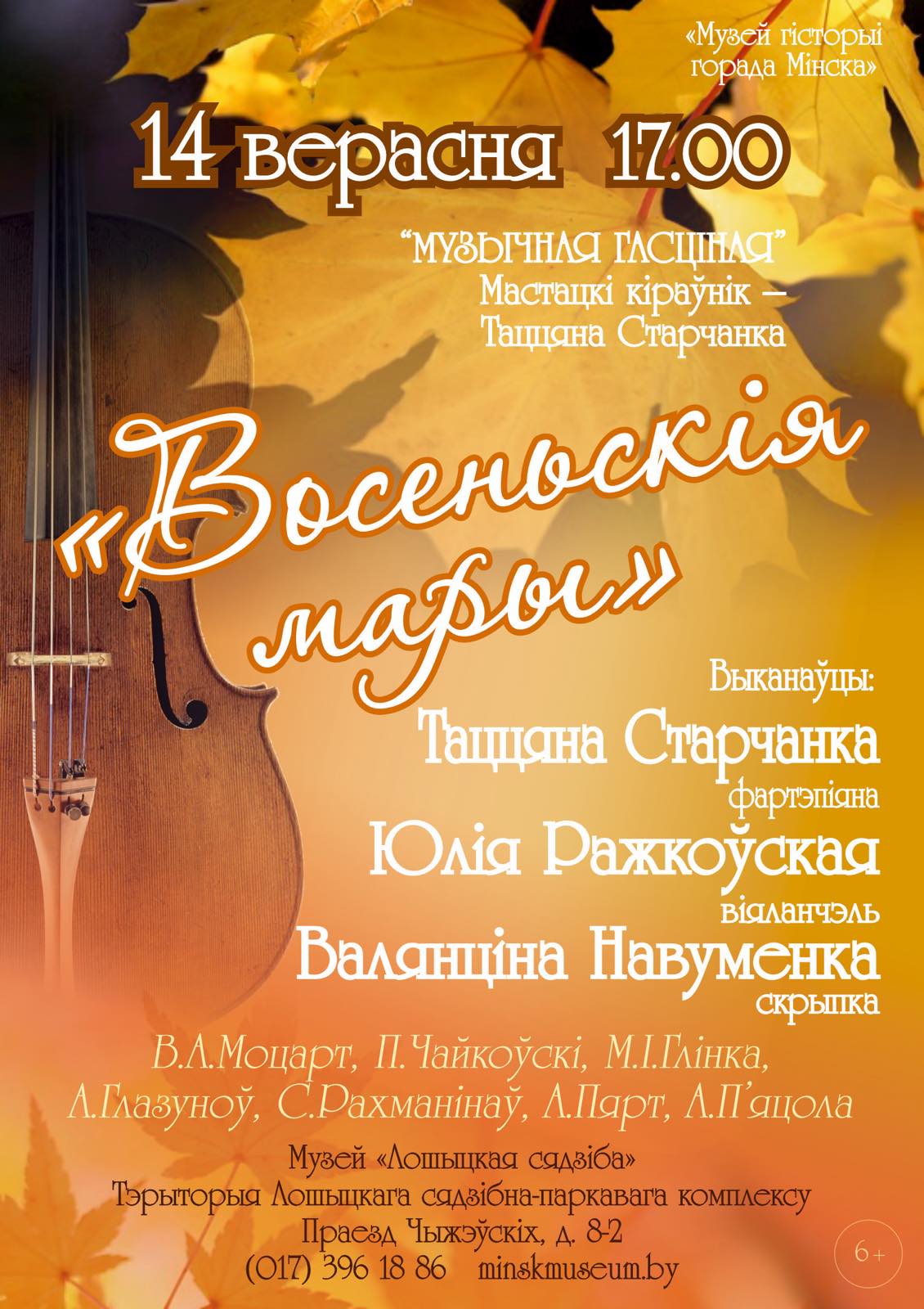 1Праграма «Восеньскія мары» – гэта палітра восеньскіх настрояў, якая сабрана з шэдэўраў сусветнай класікі.