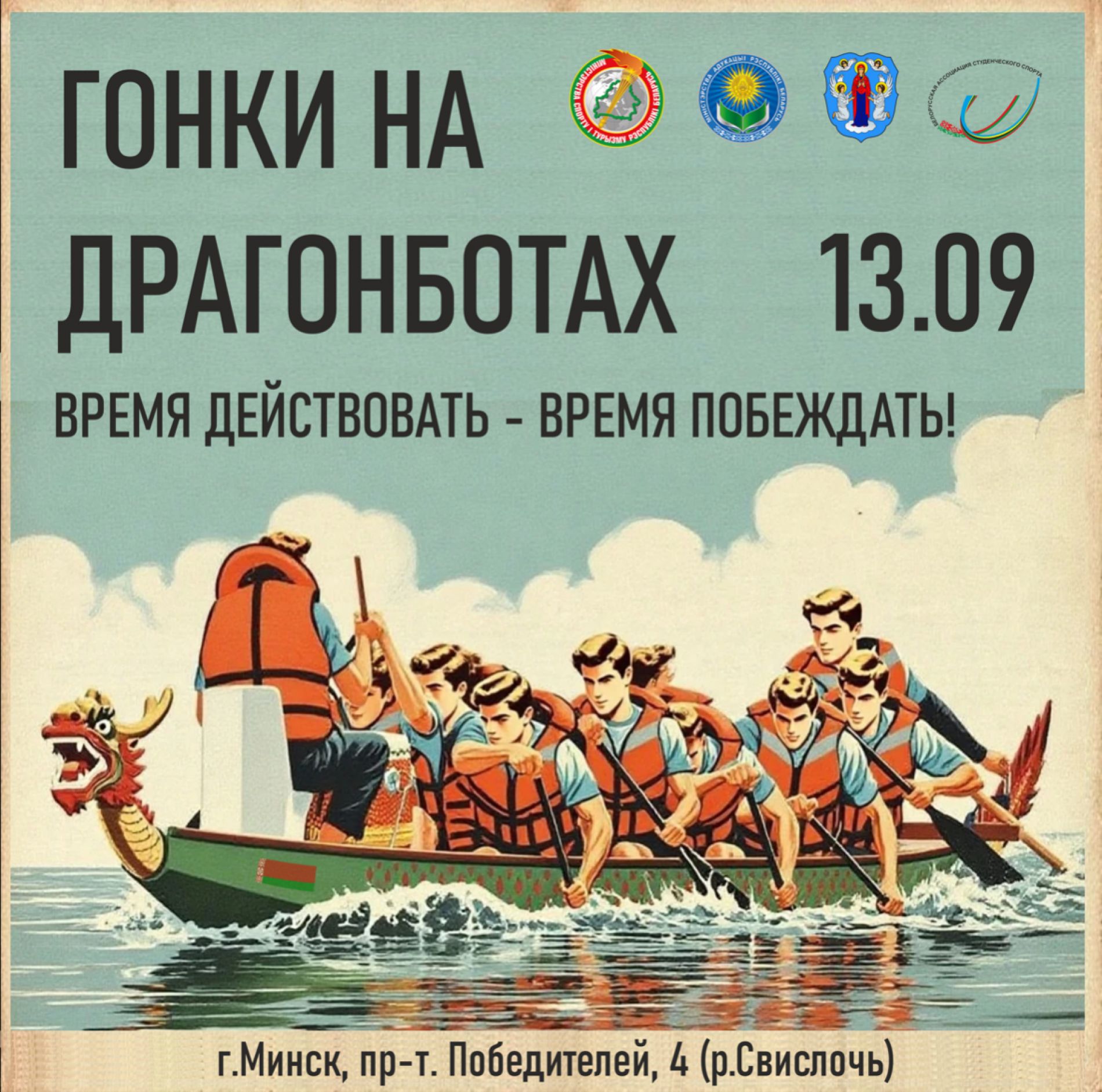 13 сентября около столичного Дворца спорта на реке Свислочь пройдут гонки на драгонботах среди команд учреждений высшего образования.