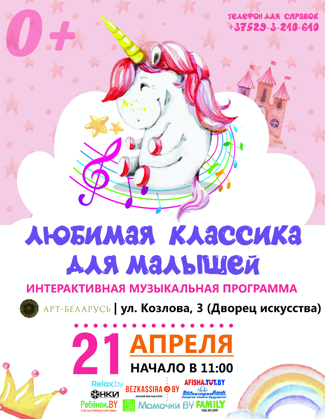 Международная выставка «БэбиЭкспо», мультфильм «Леонардо: Миссия Мона Лиза», цирковое представление «Весёлые приключения итальянца», спектакль «Аленький цветочек», музейные занятия «Белорусский букварь», мастер-классы, выставки, музыкальные программы и многое другое.