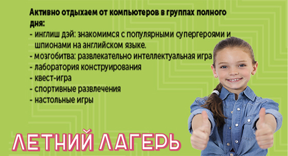 - городской лагерь полного дня (с обедом) и частичным пребыванием на базе филиалов сети школ IT-образования АЙТИЛАНДИЯ.