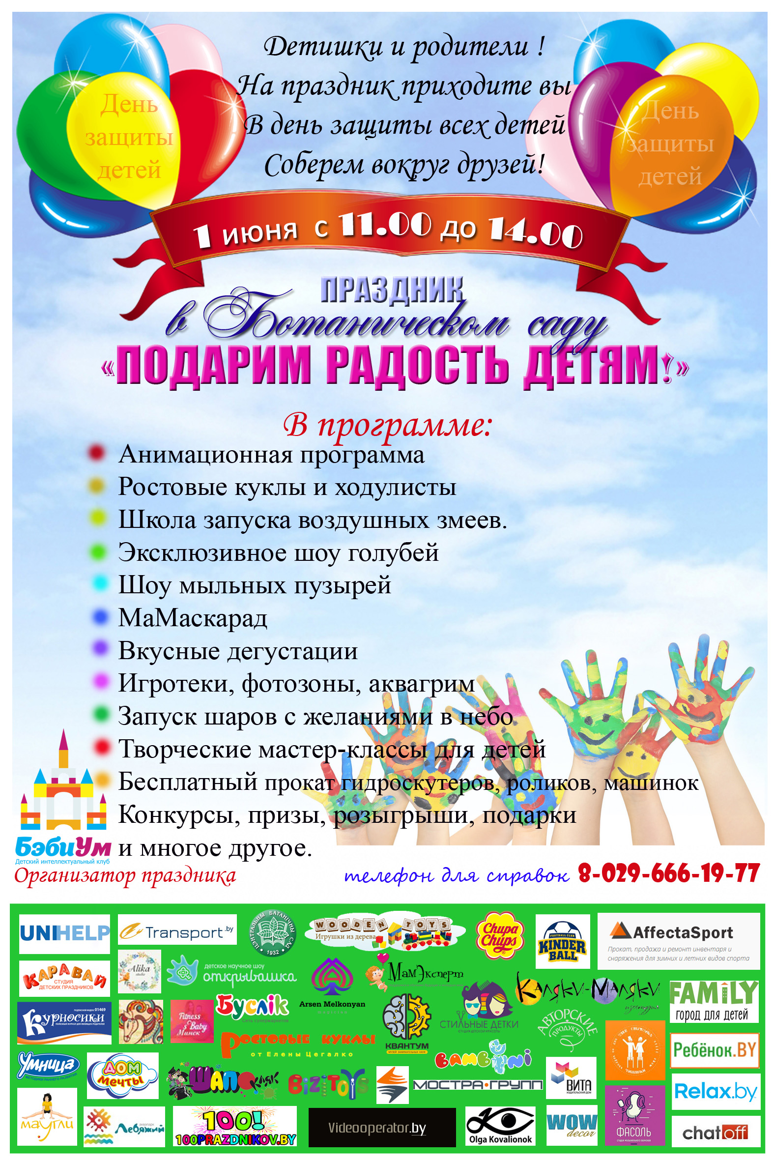 Анимационные шоу-программы, веселые клоуны и настоящие фокусники, выступления детских коллективов, танцевальный флеш-моб, 3х-метровый танцующий АэроМедведь, ростовые куклы Елены Цегалко, шоу мыльных пузырей и многое другое.