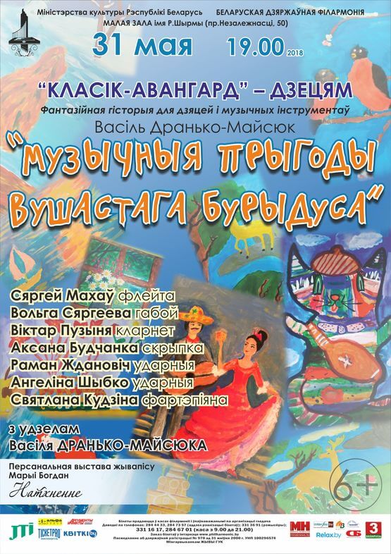 Белорусская государственная филармония представляет проект «Классик-Авангард» - детям. Василь Дранько-Майсюк - «Музыкальные приключения ушастого Буридуса»: фантазийная история для детей и музыкальных инструментов.