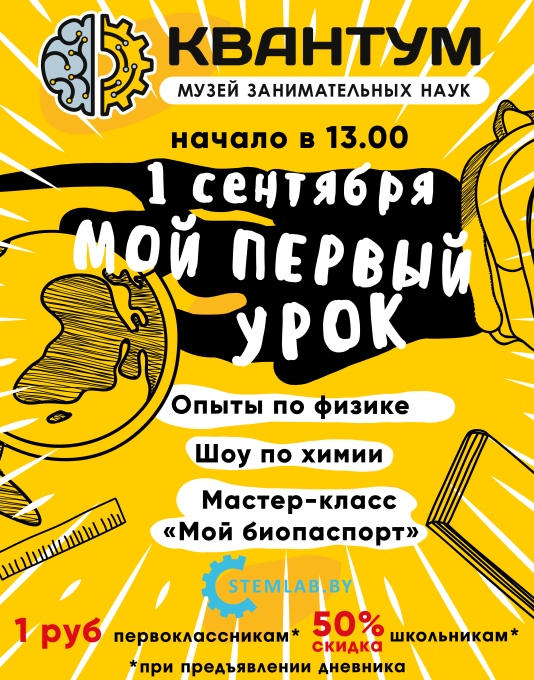 При входе на мероприятие «Мой первый урок» посетителям выдадут «дневник». А тем, кто пройдет квест, музей занимательных наук «Квантум» подарит подарки.