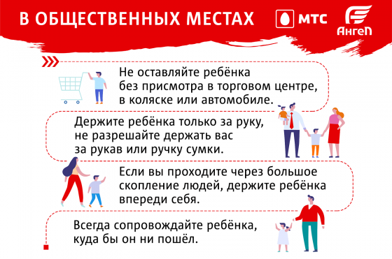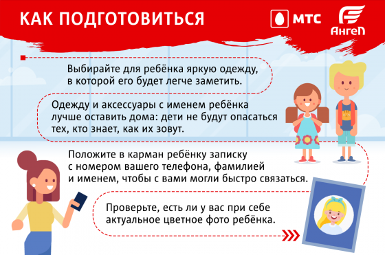 Компания МТС и поисково-спасательный отряд «Ангел» подготовили памятку для детей и родителей о безопасности в общественных местах. Рекомендации помогут ребенку не потеряться в городе или найтись быстрее. Таким образом продолжается информационный проект партнеров о правилах безопасного поведения для взрослых и детей.