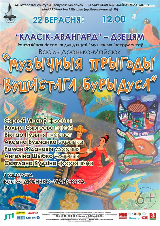 Белорусская государственная филармония представляет проект «Классик-Авангард» - детям. Василь Дранько-Майсюк - «Музыкальные приключения ушастого Буридуса»: фантазийная история для детей и музыкальных инструментов.