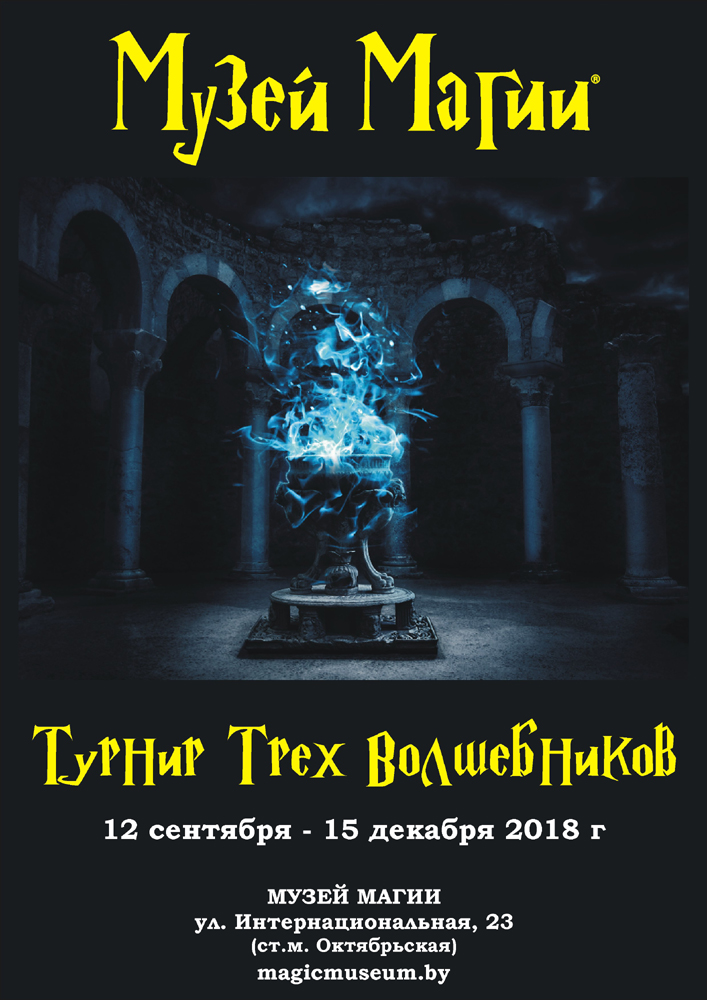 На интерактивной выставке «Турнир Трёх Волшебников» экспонируются живописные, графические и 3D произведения, посвященные трем знаменитым волшебникам, а также экспонаты о старинном состязании юных магов, в котором участвуют по одному представителю от трёх известнейших магических школ.