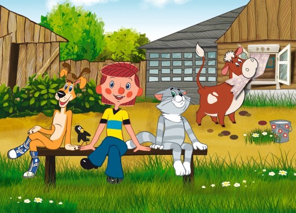 обычно. Кот Матроскин пьет молоко, Шарик готовится к фотоохоте, Дядя