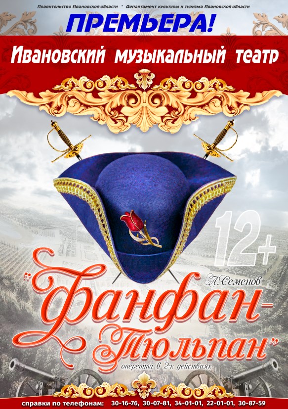 Гастроли Ивановского музыкального театра. Зрителей ждет встреча с музыкальной интерпретацией авантюрной комедии "плаща и шпаги", которая принадлежит известному российскому композитору Андрею Семенову и драматургу Владиславу Старчевскому. Мюзикл получился во всех смыслах увлекательным, ведь он рассказывает о любовных похождениях и военных приключениях главного героя Фанфана-Тюльпана во времена правления короля Франции Людовика XV.