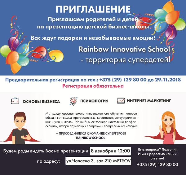 В Минске открывается первая Детская бизнес-школа, в которой с детства учат основам и законам бизнеса, формируют и развивают в ребёнке качества, необходимые для успешного карьерного и предпринимательского роста. Участников ждут игры, сюрпризы, подарки и незабываемые эмоции.