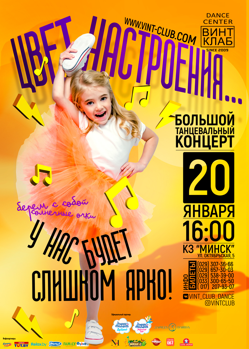 Центр танца «Винт-Клаб» с 2009 года ежегодно проводит большие концерты, которые превращаются в настоящий праздник для детей и их родителей, и всегда оставляют теплые воспоминания и яркие впечатления. За годы работы было организовано более 20 масштабных мероприятий и около 14000 юных танцоров приняли в них участие.