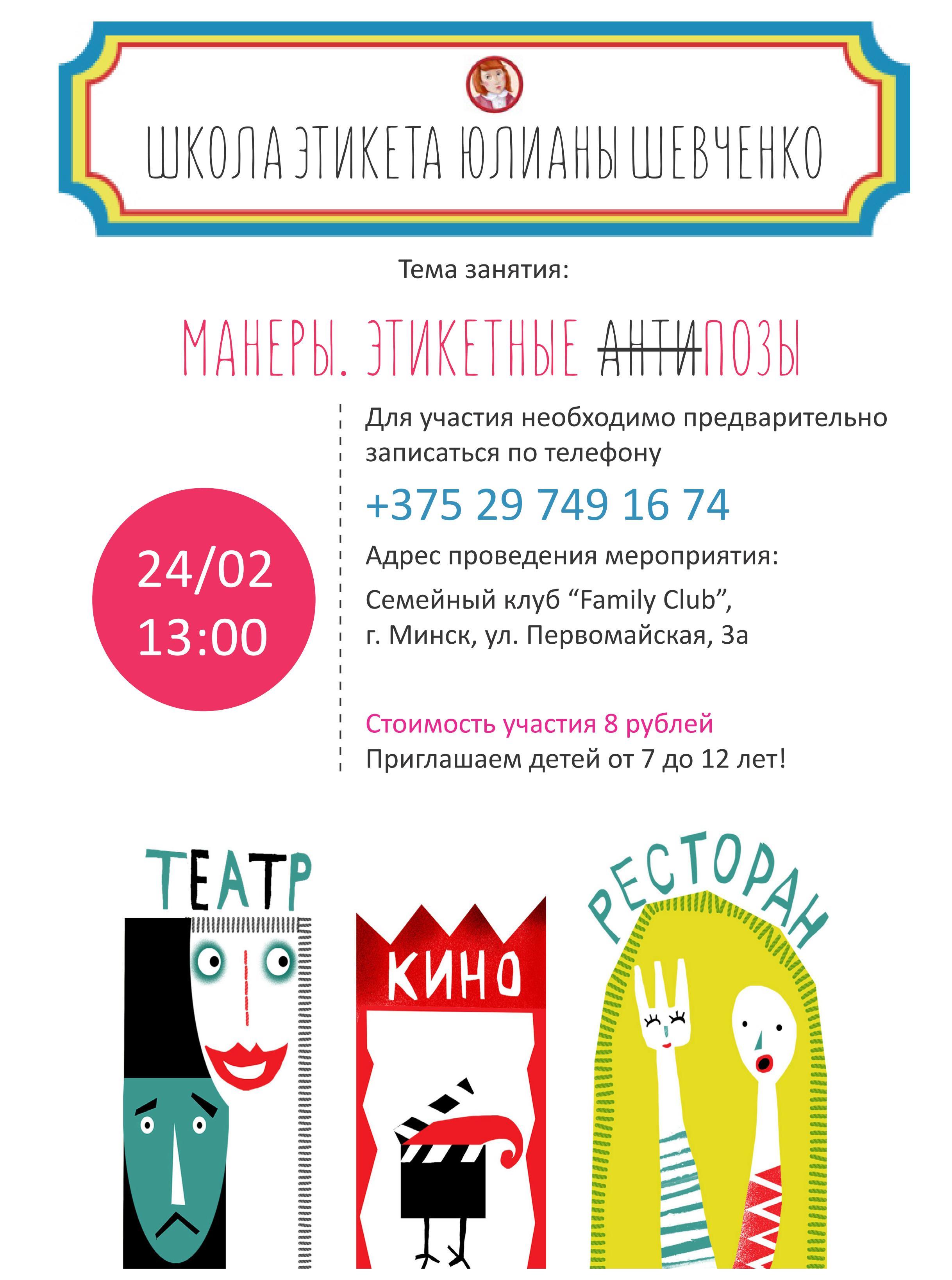 24 февраля 2019 г. в 13.00 Школа этикета Юлианы Шевченко в Минске