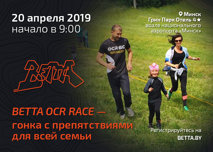 20 апреля 2019 года детей и родителей приглашают принять участие в гонке с препятствиями BETTA OCR RACE, которая пройдет в сосновом бору в 8 км от аэропорта Минск-2 на базе отеля
