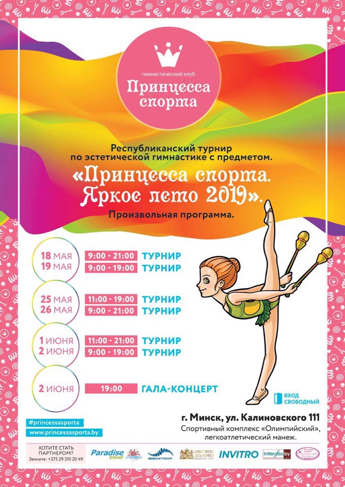 Турнир стартует 18 мая. На протяжении 3 недель каждые выходные вы сможете увидеть выступления гимнасток, в которых они покажут самые сильные и эффектные стороны своего мастерства. В этом году на гимнастический ковер выйдут 264 команды клуба «Принцесса спорта» из Минска, Осиповичей, Бобруйска и Колодищей. Возраст гимнасток — от 4 до 16 лет. Они будут выступать в командах от 6 человек.