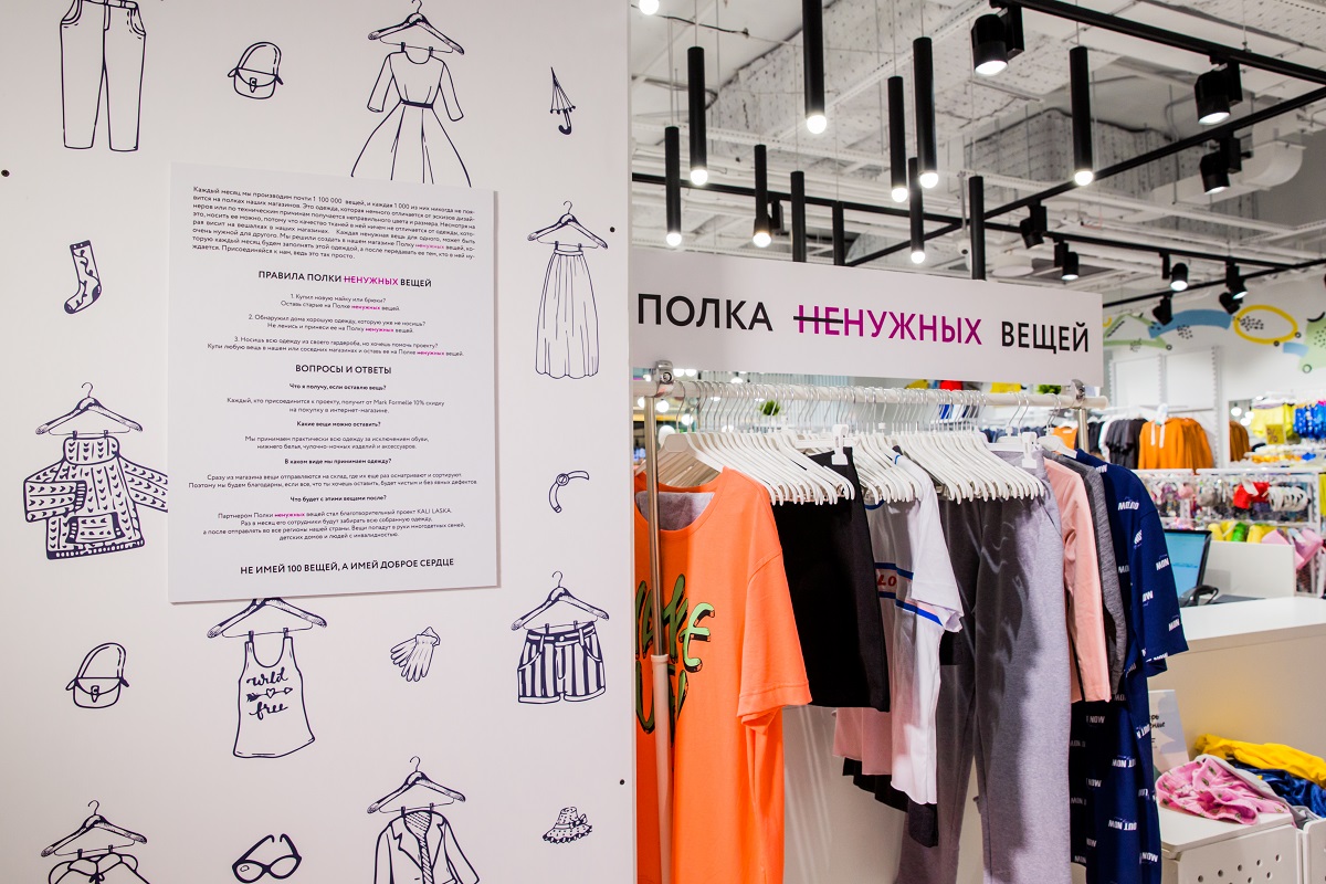 зоны магазина установили специальный стеллаж — Полку ненужных вещей. Здесь можно