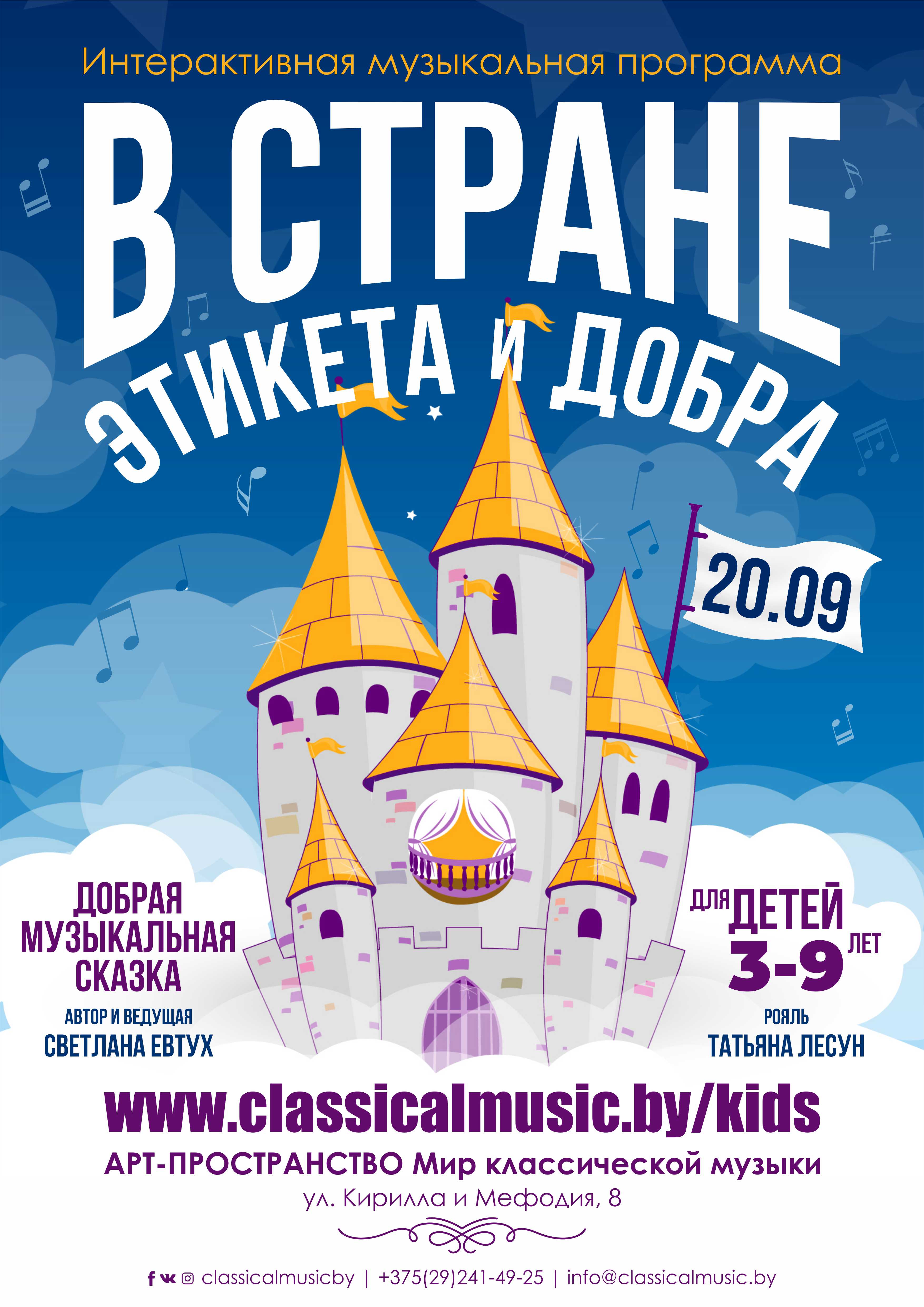 В программе – знакомство детей с этикетом, а также музыкой классических и современных композиторов – известными произведениями Баха, Моцарта, Шопена, Чайковского, перемежающиеся добрыми детскими песнями.