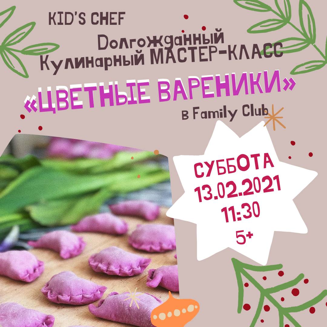 В кафе Family Club для мальчишек и девчонок запускают настоящий кулинарный марафон на KID’S CHEF. В эту субботу вас приглашают на вкусный мастер-класс по приготовлению цветных вареников!