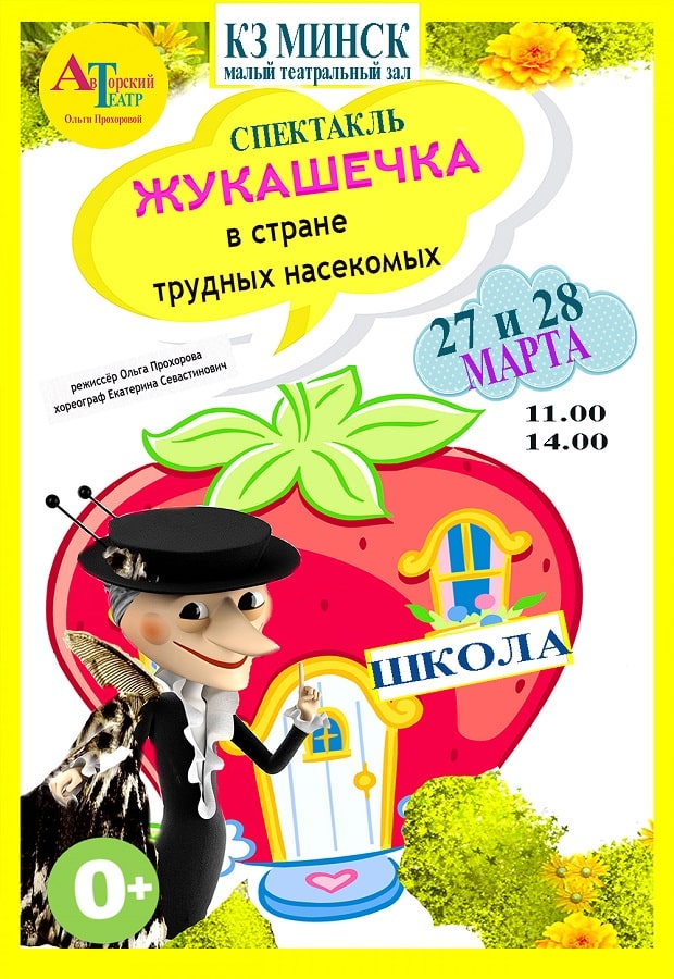 Театр «Mimoza» представляет – юмористический музыкальный спектакль для всей семьи «Жукашечка в стране трудных насекомых». Часто можно услышать от взрослых людей восклицания, какие трудные дети. Какой трудный ребенок. А представьте, целая страна трудных насекомых, которые и танцуют и поют и весело живут, но при этом никого не слушают. И всем-всем с ними очень трудно.