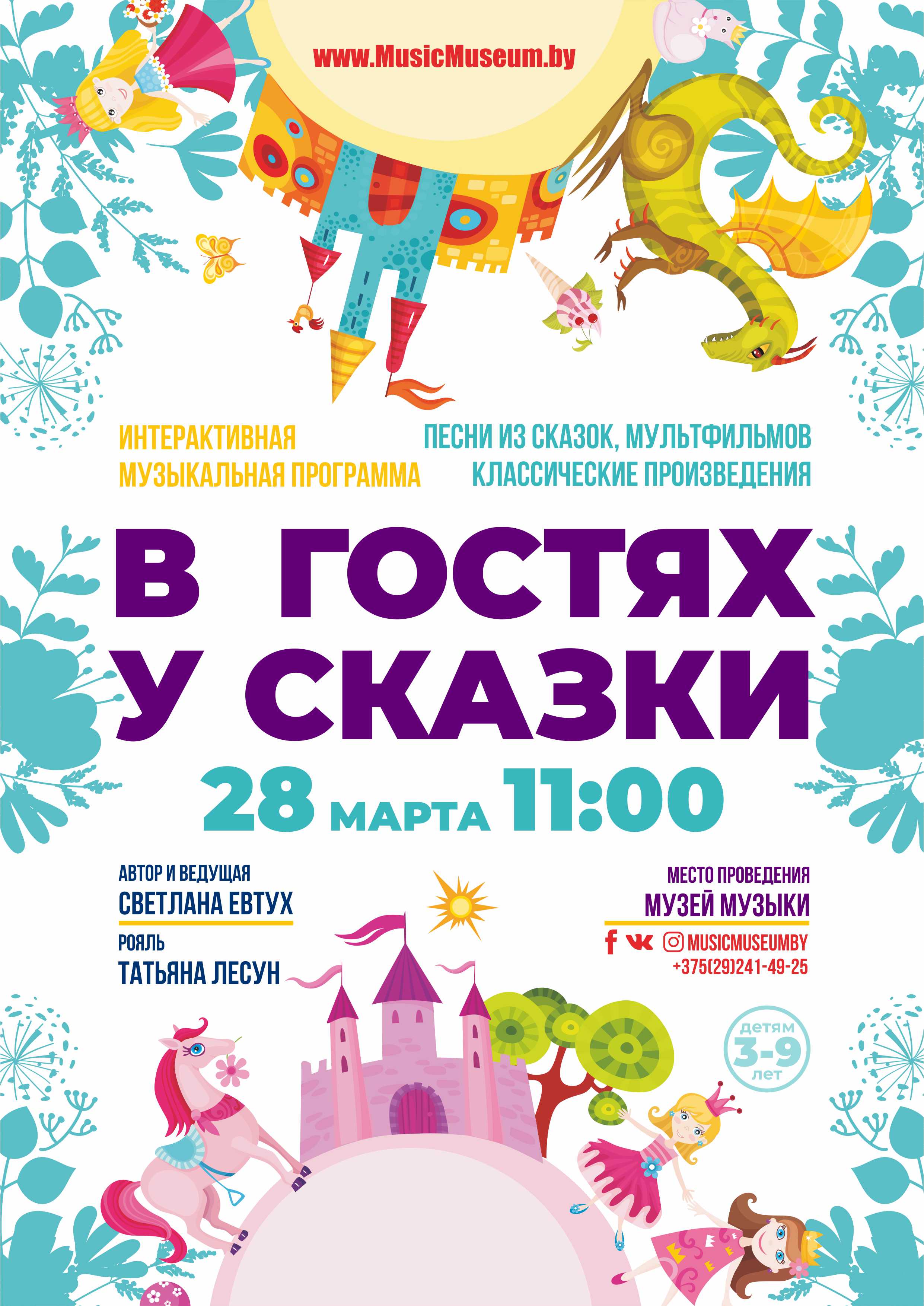 Приглашают детей и взрослых в мир сказочных героев, вместе пофантазировать, придумать свою новую сказку, встречаться с любимыми героями. Прозвучат песни из сказок и мультфильмов, классические произведения. Вас ждут песни, стихи, загадки и много красивой музыки для детей.