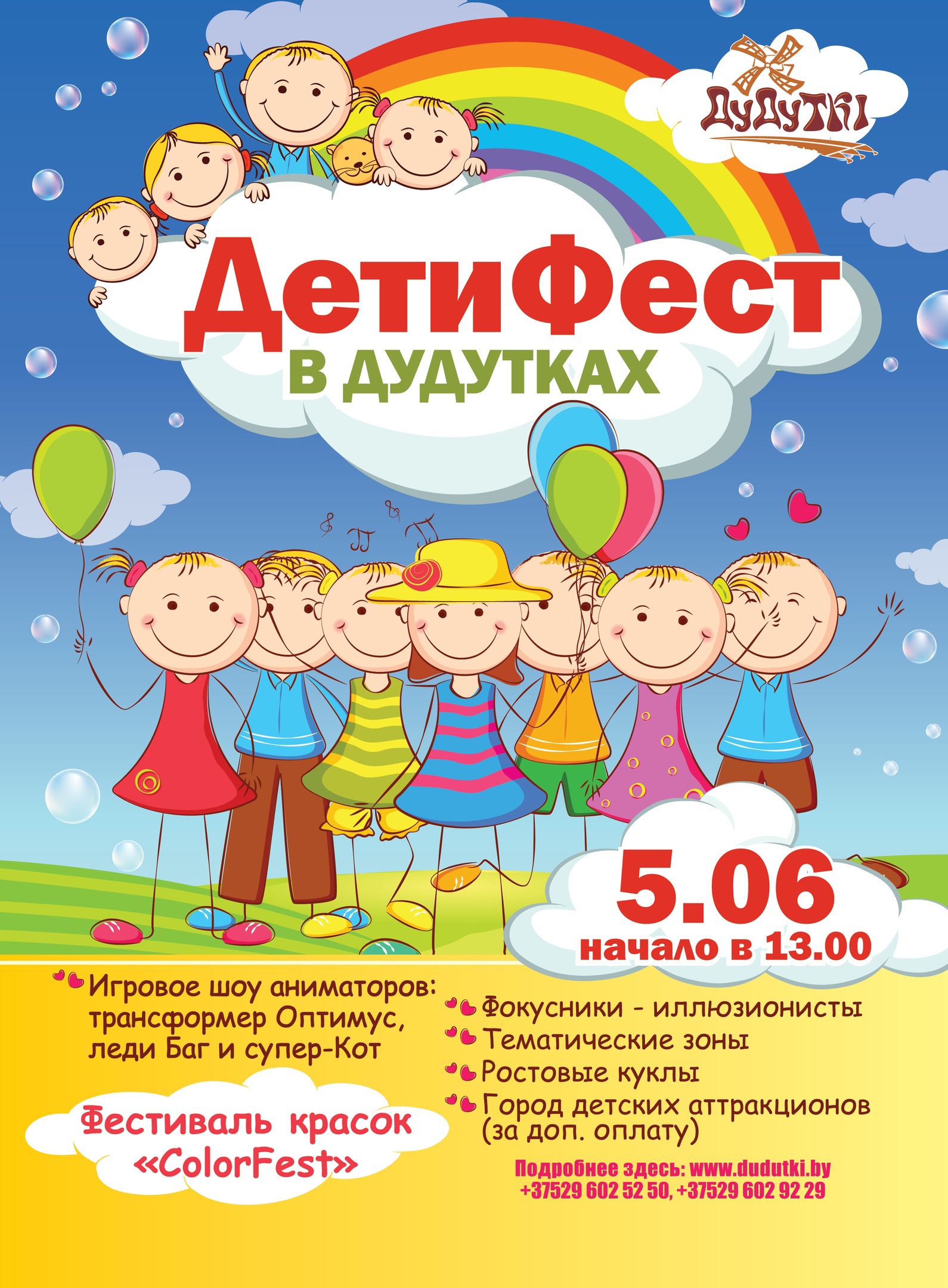 Приглашают всех на увлекательное летнее мероприятие, где смогут интересно провести время и дети, и их родители! В программе яркого праздника игровое шоу аниматоров, тематические интерактивные зоны, детские аттракционы, фокусники и иллюзионисты, фестиваль красок ColorFest, ростовые куклы, зона настольных игр, аквагрим и многое другое!