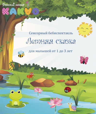 Детский театр «Какао» приглашает самых маленьких посетителей от 1 до 3 лет на яркий, красочный сенсорный бэби спектакль «Летняя сказка», в котором малыши становятся непосредственными участниками волшебных летних историй с начинкой из солнечных бликов и лунной дорожки на пруду, из полётов бабочек и жужжания пчёлок, из таинственных светлячков и цветных божьих коровок.