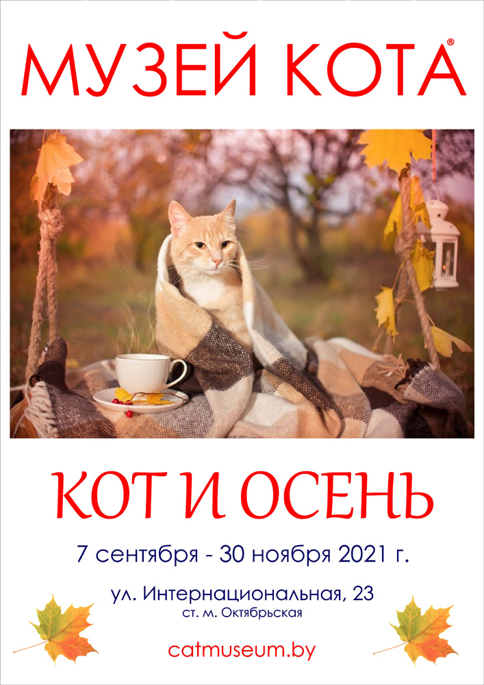 Этой осенью Музей Кота подарит посетителям уютную и теплую атмосферу. Посетителей ждет увлекательное общение с дружелюбными котами и кошками, произведения искусства, и много других развлечений на кошачью тематику. Котокафе, расположенное в музее, предоставляет каждому посетителю горячие напитки и сладости в подарок.