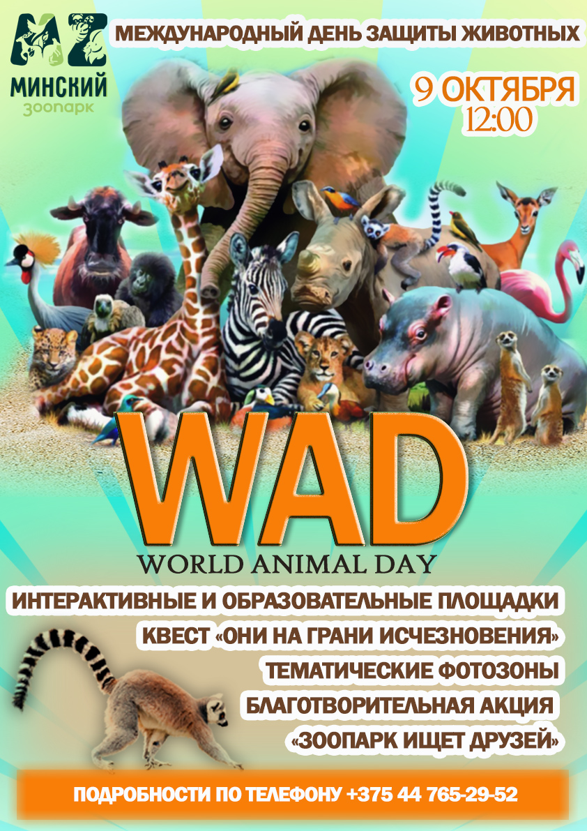 Всемирный день защиты животных призван объединить усилия людей в сохранении животного мира нашей планеты. В этот день Минский зоопарк предлагает всем задуматься и осознать свою роль в охране природы и ее представителей, вспомнить о том, что мы в ответе за тех, кого «приручили».