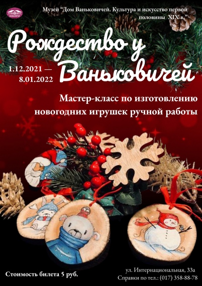 С 1 декабря 2021 по 8 января 2022 в музее «Дом Ваньковичей. Культура и искусство первой половины XIX в.» пройдёт тематическая программа «Рождество у Ваньковичей» с мастер-классом по изготовлению новогодних игрушек.