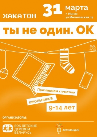 SOS-Детские деревни в Беларуси и Центр обучения цифровым навыкам «Айтиландия» приглашают школьников на Хакатон по созданию компьютерного мультфильма в поддержку информационной кампании «ты не один.ОК». Принять участие могут школьники 9-14 лет. Хакатон пройдет 31 марта в Минске и в других городах.