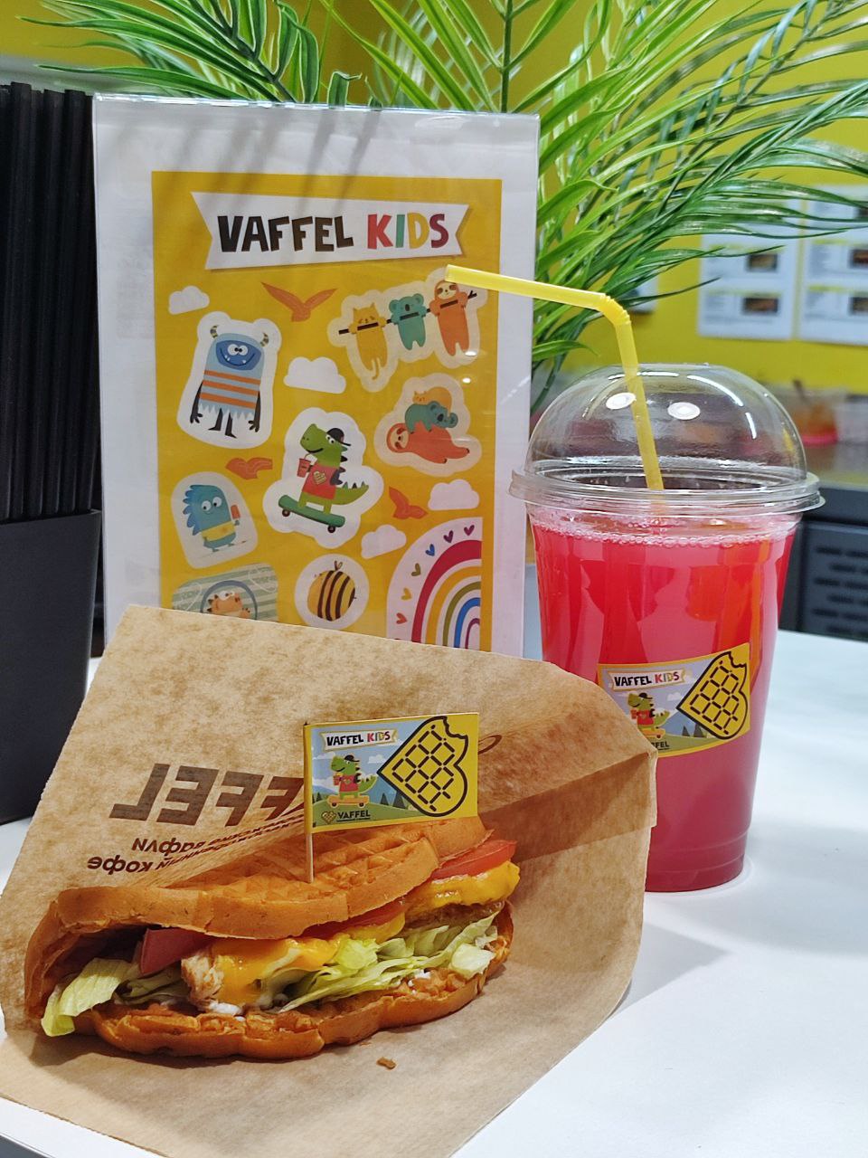 В Норвежском VAFFEL появилось полноценное детское меню. За 11.90 рублей вы получите вафлю (на выбор), большой напиток и стикерпак в подарок для ребенка. Это, кстати, ещё и выгодно по цене.