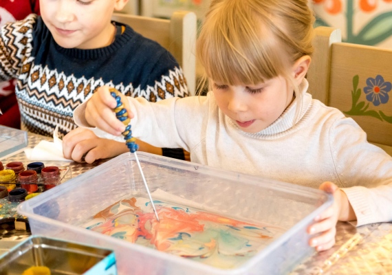 Студия арт-терапии и живописи на воде Moon&Star Ebru приглашает мам и детей на рисование в стиле суминагаши. Это императорская забава при японском дворе позволяла ловить творческое состояние без ограничений и правил.