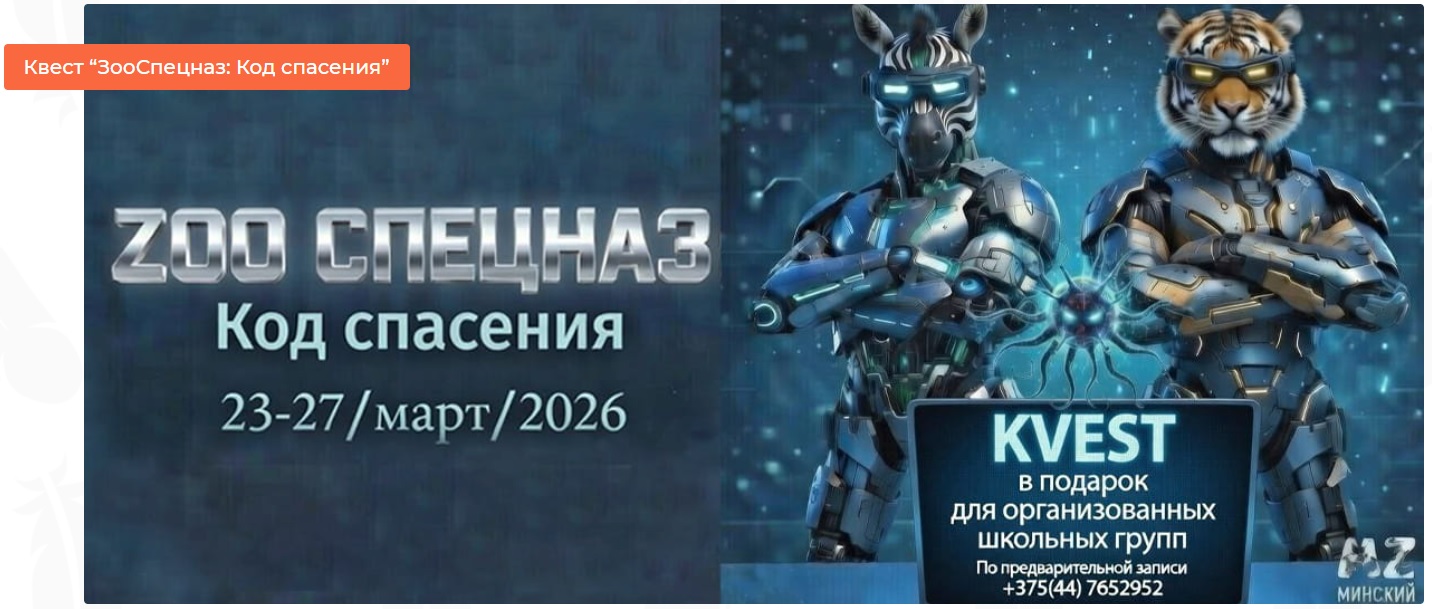 В дни весенних каникул школьников приглашают в зоопарк на увлекательнейшее приключение! Всего одну неделю – с 23 по 27 марта 2026 – Минский зоопарк дарит квест «ЗооСпецназ: Код спасения» организованным группам учащихся.