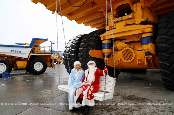 На БЕЛАЗе гостей встретят масштабные новогодние инсталляции и фотозоны. Детей ждут хороводы у главной елки БЕЛАЗа, потешки с шутками-прибаутками, сюрпризы и фирменные подарки.