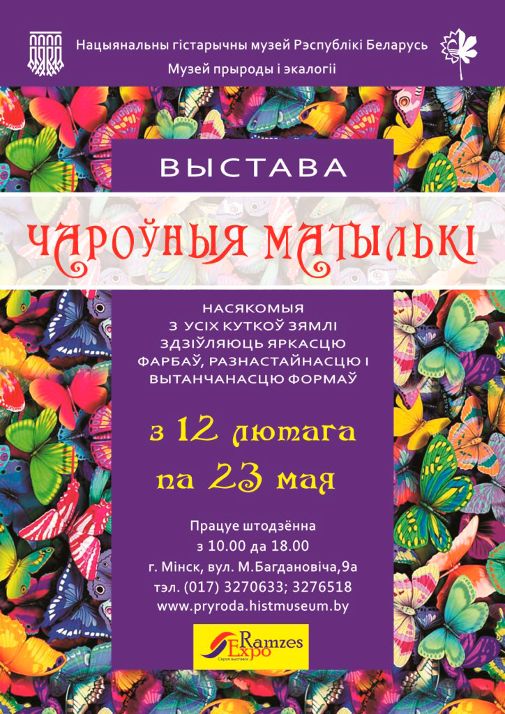 Музей природы и экологии приглашает зрителей на новую выставку «Чароўныя матылькі», где дети смогут познакомиться с экземплярами более 100 бабочек самых разных окрасов, форм и размеров.